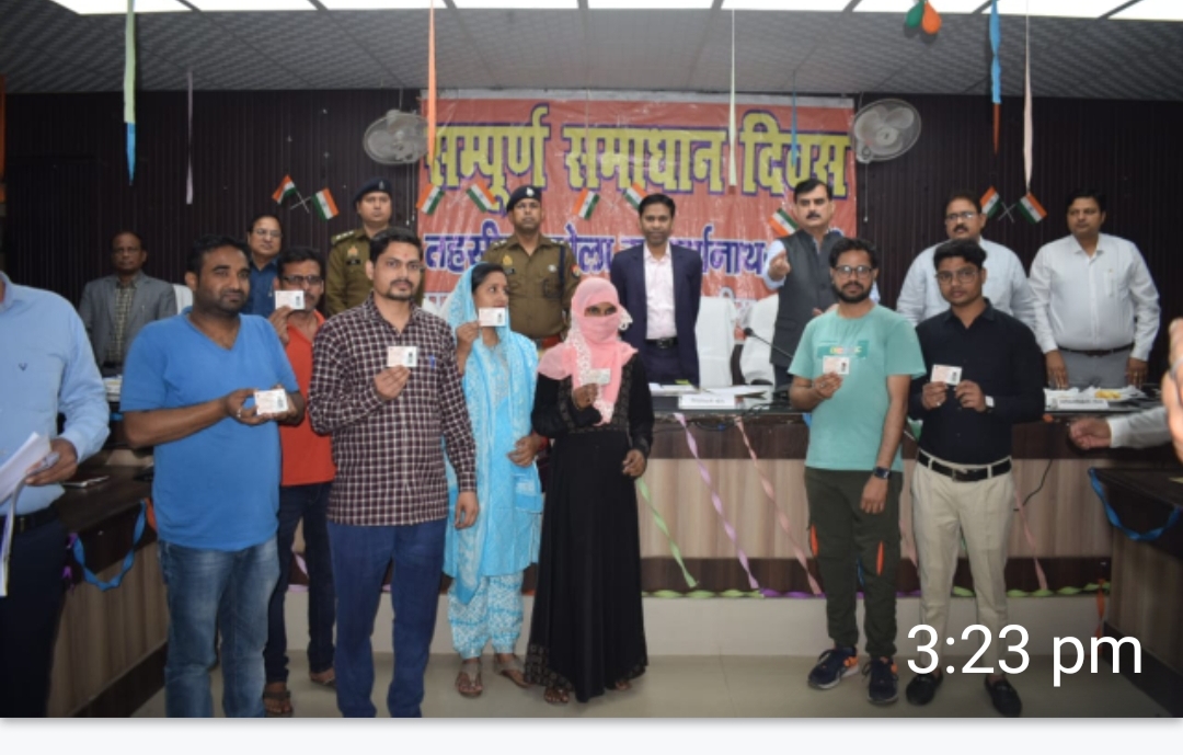 पलियाकलां- खीरी लखीमपुर 16 मार्च। शनिवार को संपूर्ण समाधान दिवस के दौरान सुबह 11 बजे तहसील सभागार गोला गोकर्णनाथ में जिलाधिकारी महेंद्र बहादुर सिंह, पुलिस अधीक्षक गणेश प्रसाद साहा, मुख्य विकास अधिकारी अनिल कुमार सिंह ने दस लाभार्थियों को फैमिली आईडी (एक परिवार-एक पहचान) कार्ड किए। इस दौरान उप जिलाधिकारी रत्नाकर मिश्रा, तहसीलदार सुखबीर सिंह, जिला अर्थ एवं संख्या अधिकारी अरविंद कुमार वर्मा मौजूद रहे।
