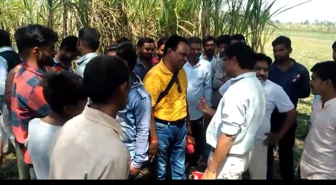 घटनास्थल पर जमा किसानों की भीड़