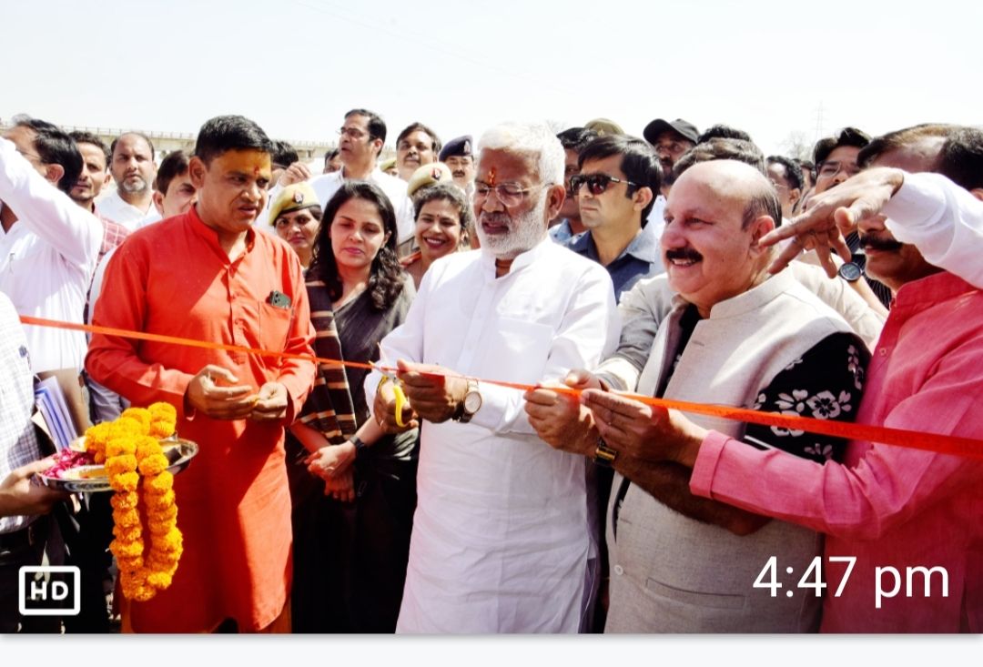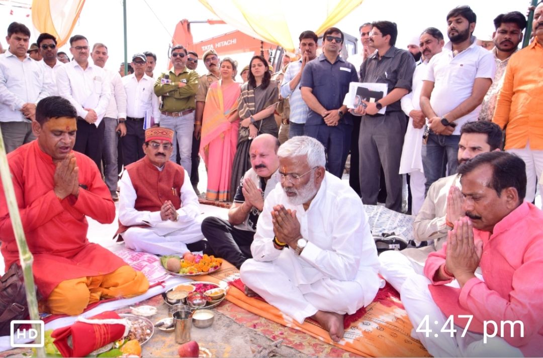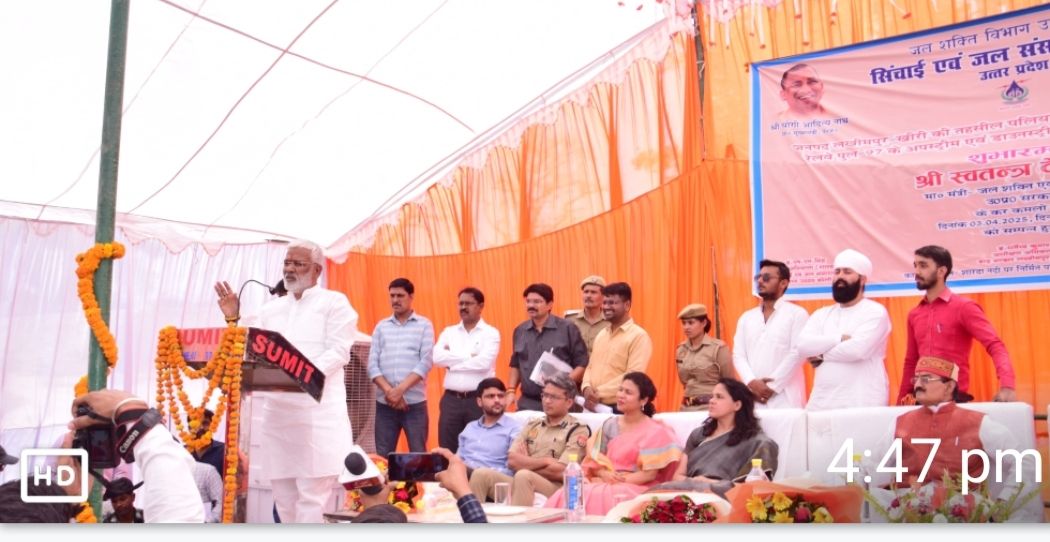 पलियाकलां- (खीरी)लखीमपुर खीरी, 03 अप्रैल। सूबे के जल शक्ति मंत्री स्वतंत्र देव सिंह ने लखीमपुर खीरी की तहसील पलिया पहुंचकर जनप्रतिनिधियों -अफसरो संग शारदा नदी पर निर्मित पलिया रेलवे पुल-97 के अपस्ट्रीम और डाउनस्ट्रीम में ₹22.23 करोड़ की लागत से होने वाले चैनलाइजेशन कार्य का पूरे विधि विधान से भूमि पूजन किया। उन्होंने 48 परियोजनाओं का लोकार्पण, 20 परियोजनाओं का शिलान्यास भी किया। मंत्री ने नदी तट पर फीता काटकर कार्य का शुभारंभ किया। पोकलैंड चालक धर्मा सिंह, विपिन गुर्जर, विशाल संदीप और विनोद का टीकाकर इस कार्य को शुरू कराया। इस मौके पर मुख्य रूप से विधायक रोमी साहनी, योगेश वर्मा, अमन गिरी, विनोद शंकर अवस्थी, बीजेपी जिलाध्यक्ष सुनील सिंह, आयुक्त डॉ रोशन जैकब, डीएम दुर्गा शक्ति नागपाल, एसपी संकल्प शर्मा, सीडीओ अभिषेक कुमार,मुख्य अभियन्ता स्तर-1, रूहेलखण्ड, सिंचाई एवं जल