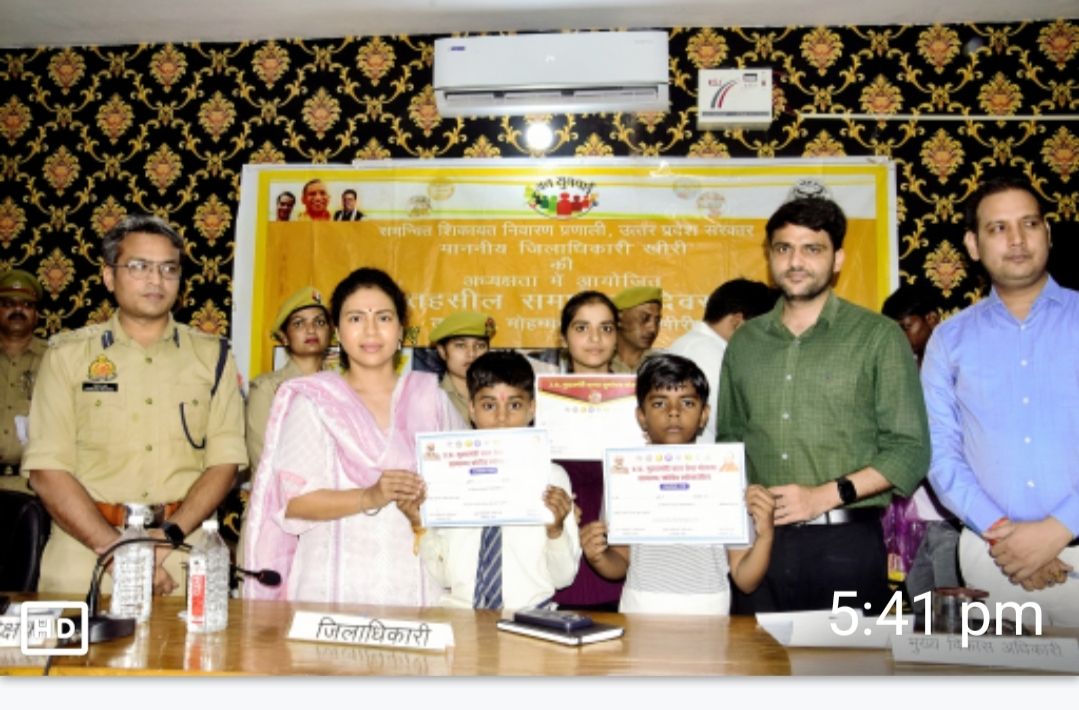 पलियाकलां- (खीरी)लखीमपुर खीरी 03 मई : आमजन की समस्याओं के त्वरित निस्तारण के लिए शनिवार को डीएम दुर्गा शक्ति नागपाल की अध्यक्षता में तहसील मोहम्मदी के सभागार में “संपूर्ण समाधान दिवस” आयोजित हुआ। इस अवसर पर डीएम ने एसपी संकल्प शर्मा, सीडीओ अभिषेक कुमार व अन्य अधिकारियों ने आये हुए फरियादियों के समस्याओं की गम्भीरतापूर्वक सुनवाई करते हुए सम्बन्धित अधिकारियों को मौके पर जाकर जनशिकायतों की निष्पक्ष जाँच करके समयबद्धता के साथ गुणवत्तापरक निस्तारण करने के निर्देश दिए।