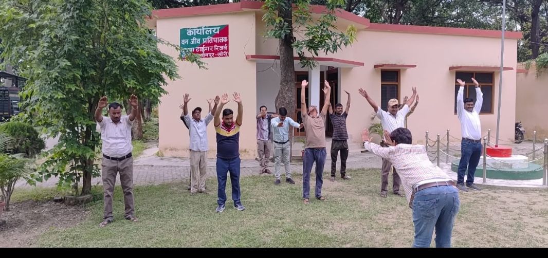 पलिया कलां (खीरी)मुख्यालय दुधवा टाइगर रिजर्व प्रभाग पलिया खीरी में पलिया सामुदायिक चिकित्सा केंद्र के चिकित्सक द्वारा आज स्वास्थ्य शिविर एवं व्यायाम का किया गया आयोजन समस्त कर्मचारियों द्वारा अपना अपना कराया गया परीक्षण।