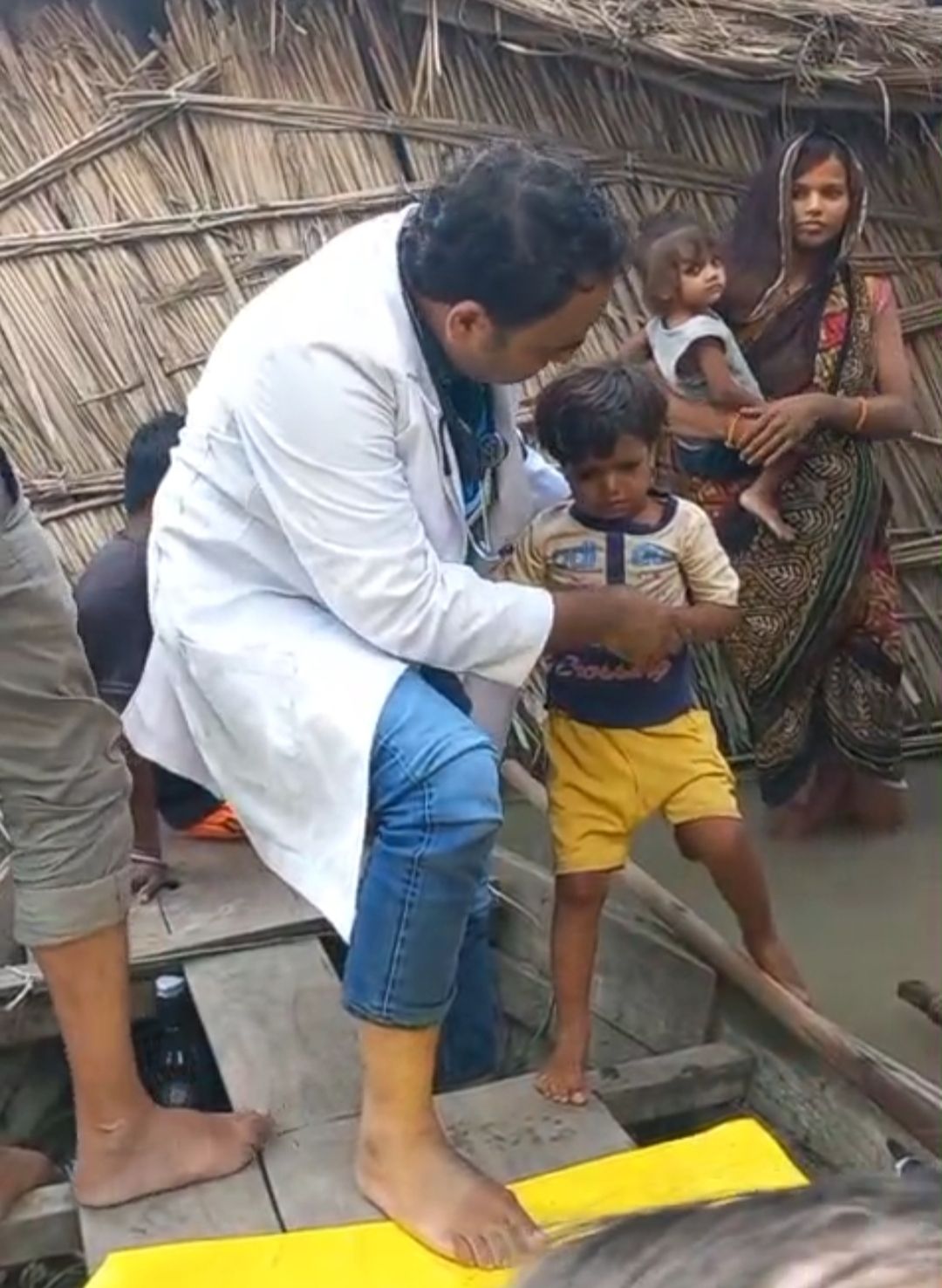पलिया कलां (खीरी)मुख्य चिकित्सा अधिकारी डॉ संतोष गुप्ता लखीमपुर खीरी के निर्देशानुसार अधीक्षक सामुदायिक स्वास्थ्य केंद्र पलिया डॉ भरत सिंह के निर्देशन में पलिया बाढ़ क्षेत्र में आज दिनांक 4.9.2025 को 8 टीम गठित कर बाढ़ क्षेत्र में स्वास्थ्य परीक्षण टीमों के नोडल ऑफिसर डॉ अजीत सिंह फिजिशियन द्वारा 8 टीम का निरीक्षण कर बाढ़ ग्रस्त ग्राम श्रीनगर ,मेला घाट ,अतरिया, मकनपुर ,चंबरबोज, गोविंदनगर, खजुरिया भानपुरी ,कमलापुरी आजाद नगर बरबाद नगर में लोगों का स्वास्थ्य परीक्षण किया गया साथ ही उनको दवा वितरित की गई बाढ़ क्षेत्र में बर्बाद नगर जो की गांव क्षेत्र से पूरी तरीके से मार्ग से कट गया है उन गांव में चिकित्सा अधिकारी डॉक्टर अजीत सिंह व उनकी टीम ने पहुंचकर 18 लोगों का स्वास्थ्य परीक्षण कर दवा वितरित की गई साथ ही क्लोरीन की टेबलेट पानी में डालकर पीने के लिए बताया गया अधिक फीवर होने पर माथे पर पानी की पट्टी रखें पेरासिटामाल की टेबलेट खाएं ,दस्त होने पर पानी जैसे तरल पदार्थ पीने चाहिए, बाढ़ के पानी से बचाव करना चाहिए आज 8 टीमों ने मिलकर कुल 465 लोगों का स्वास्थ्य परीक्षण कर दवा वितरण की गई टीम में चिकित्सा अधिकारी डॉक्टर अजीत सिंह अंकित दीक्षित, टी रहमान फार्मासिस्ट ,शिवलाल आदि लोग टीम में शामिल रहे।