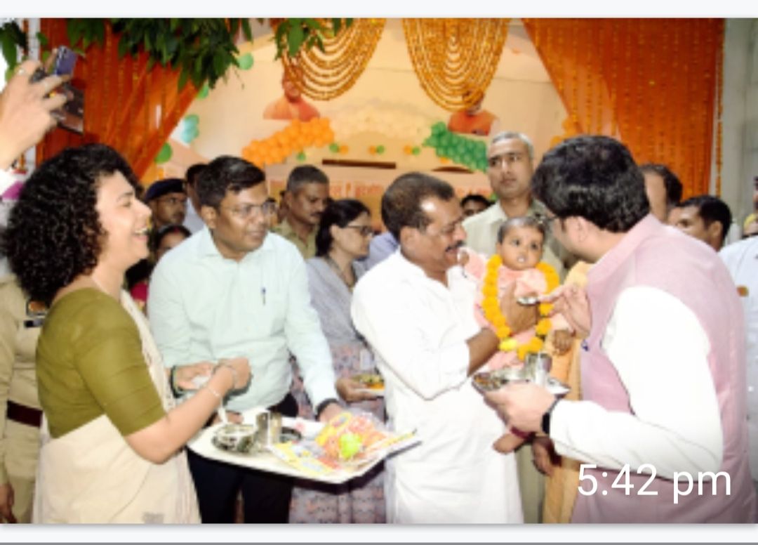 मुख्य अतिथि प्रभारी मंत्री नितिन अग्रवाल, विधायक सदर योगेश वर्मा, भाजपा जिलाध्यक्ष सुनील सिंह, डीएम दुर्गा शक्ति नागपाल और एसपी संकल्प शर्मा, सीडीओ अभिषेक कुमार, सीएमओ डॉ संतोष गुप्ता ने पांच गर्भवती महिलाओं का गोद भराई और छह माह के पाँच शिशुओं का अन्नप्राशन संस्कार कराया। विधायक योगेश वर्मा ने नन्हें शिशुओं को गोद में उठाया, प्रभारी मंत्री ने चम्मच से खीर का पहला कौर खिलाया और डीएम ने अपने हाथों से खिलौने देकर दुलार बरसाया।