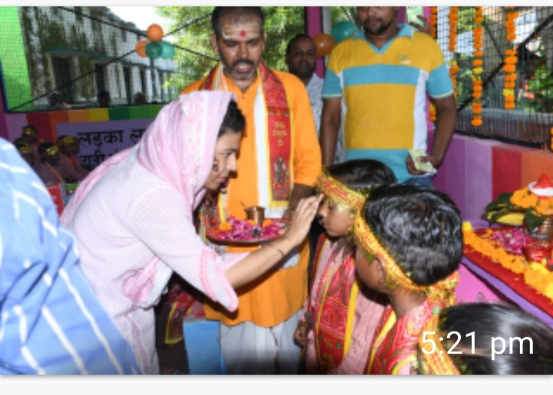 वैदिक मंत्रोच्चार और शंखनाद के बीच 201 नन्हीं कन्याओं को मां दुर्गा का रूप मानते हुए पूरे विधि-विधान से पूजन-अर्चन हुआ। जब परिषदीय विद्यालय की बालिकाएं लाल चुनरी ओढ़े पंक्तिबद्ध पहुंचीं तो माहौल में ऐसी आभा बिखरी मानो नौ रूपों की देवी स्वयं अवतरित हों। डीएम और विधायक ने कन्याओं के माथे पर तिलक कर पुष्प अर्पित किए। पूजन के बाद उपहार स्वरूप हर कन्या को एक थाली, गिलास, चम्मच, पानी की बोतल, स्कूली बैग, ज्योमेट्री बॉक्स, पेंसिल, रबर और कटर से सजी स्नेह-पोटली प्रदान की गई।