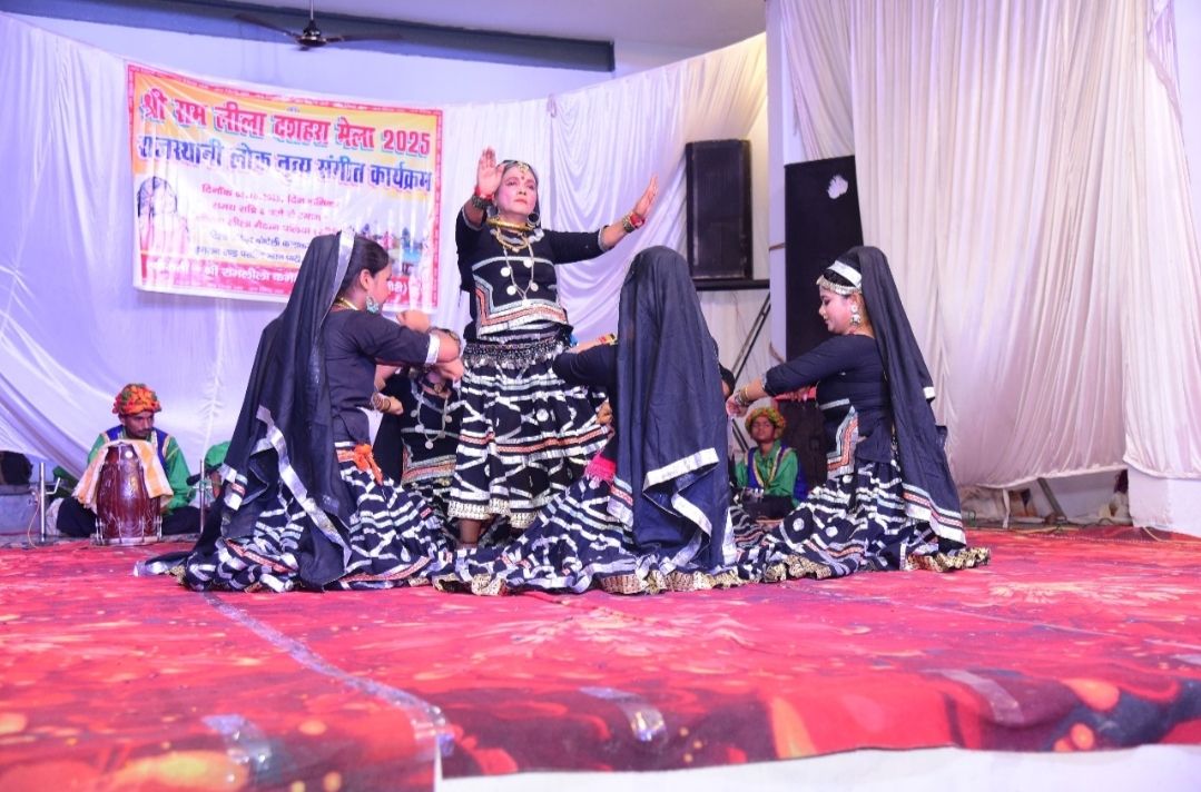 पलिया कलां (खीर) श्री रामलीला दशहरा मेला के सांस्कृतिक कार्यक्रमों की श्रृंखला में शनिवार रात को राजस्थानी लोकनृत्य व संगीत कार्यक्रम बेबी इमरान पार्टी द्वारा प्रस्तुत किया गया ।कार्यक्रम का शुभारंभ बालक राम सेवा निवृत्त डीएसपी ने मां सरस्वती जी के चित्र पर पुष्प माला पहनाकर दीप प्रज्वलित करके किया ।कलाकारों ने मां सरस्वती और गणेश जी की वंदना करके कार्यक्रम को प्रस्तुत किया उन्होंने राजा राम रामचंद्र महाराज और सियाराम की जय करते हुए पहला भजन व अन्य गीतों को गाया ।प्रसिद्ध राजस्थानी गीत “पधारो म्हारे देश” एवं “मयूर नृत्य” पर सामूहिक नृत्य किया। अन्य हिंदी और राजस्थानी गानोंं पर भी एकल और सामूहिक नृत्य किए गये। गए पंडाल में उपस्थित सभी दर्शकों ने बड़ा आनंद लिया। सभी कलाकारों को मुख्य अतिथि बालक राम जी द्वारा मोमेंटो प्रदान किया गया। कमेटी की तरफ से मुख्य अतिथि को स्मृति चिन्ह देकर आभार प्रकट किया गया।