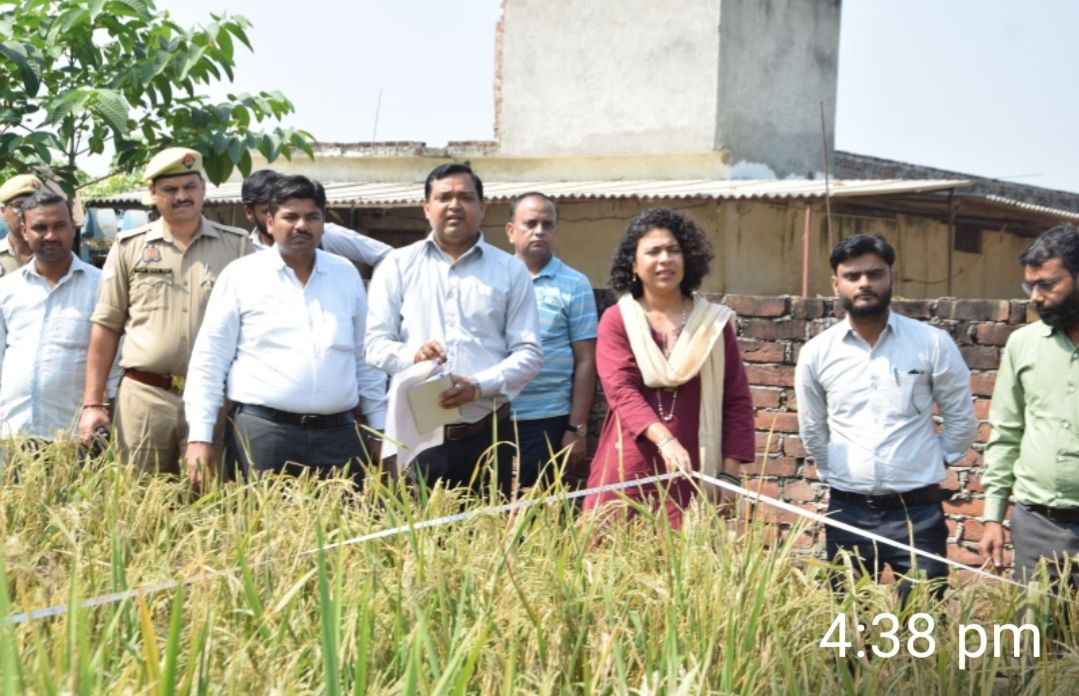 इस अवसर पर डीएम ने किसान राममूर्ति पुत्र छेदीलाल के खेत में पहुंचकर न केवल वैज्ञानिक पद्धति से धान की फसल कटवाई, बल्कि कृषक से सीधी बातचीत कर खेतीबाड़ी से जुड़ी जमीनी समस्याओं को भी समझा। धान की उत्पादकता का आंकलन करने के उद्देश्य से डीएम ने खेत में 43.3 वर्ग मीटर क्षेत्रफल का 10-10-10 मीटर का समबाहु त्रिभुज प्लॉट चिन्हित कराया। इसके पश्चात सीसीई एग्री एप के माध्यम से क्रॉप कटिंग की प्रक्रिया सम्पन्न कराई गई। कटाई के उपरांत उपज का वजन कर, आवश्यक आंकड़े संकलित किए गए, ताकि किसानों को वास्तविक उपज के अनुसार मुआवजा दिलाया जा सके। इसमें 11.770 किलोग्राम फसल प्राप्त हुई।