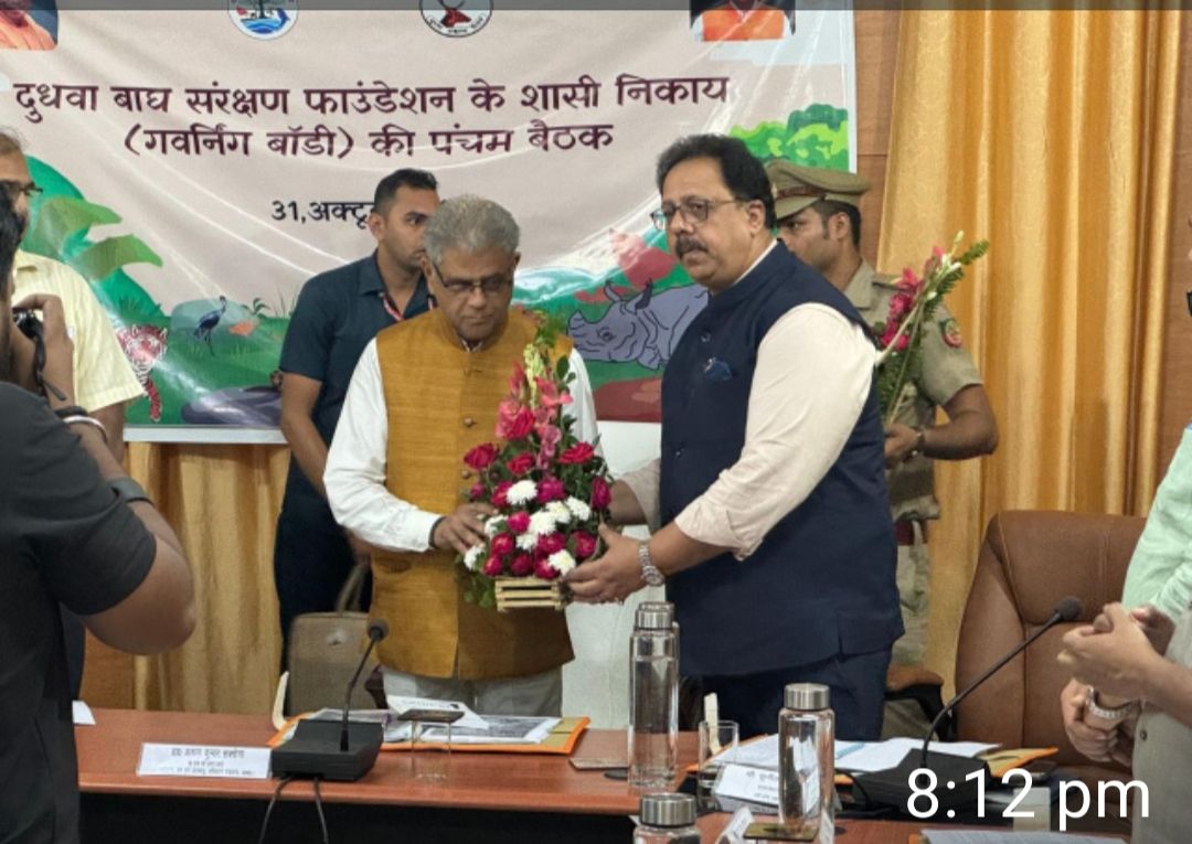दुधवा बाघ संरक्षण फाउण्डेशन के शासी निकाय बैठक में वनमंत्री के साथ, शीर्षस्थ वन विभाग के अधिकारीगण रहे उपस्थित।