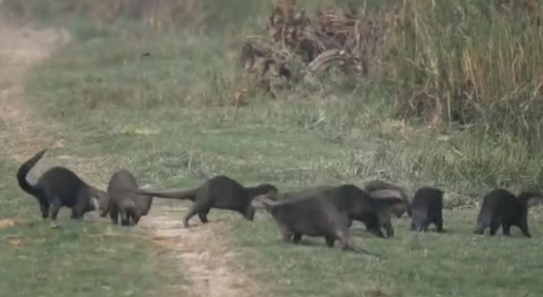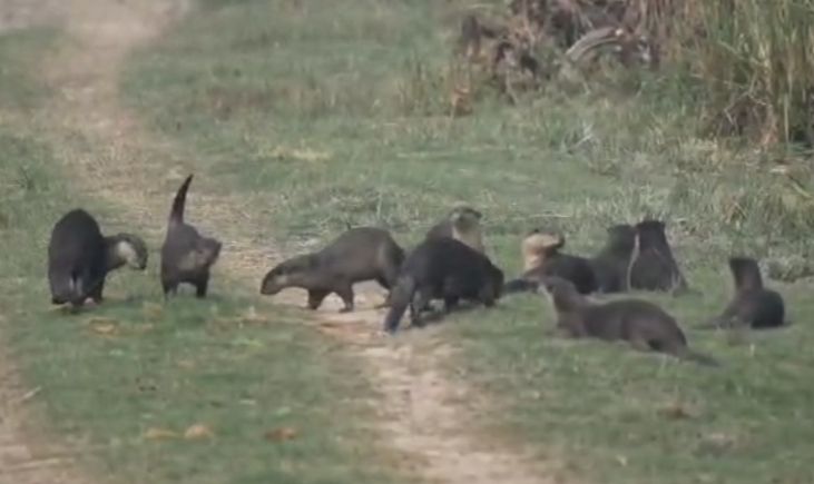 पलिया कलां (खीरी) दुधवा टाइगर रिजर्व अपनी विविध जैव विविधता के लिए जाना जाता है। यहां जहां एक ओर अच्छी संख्या में वन एवं वन जीवों के सुरक्षार्थ की जा रही पेट्रोलिंग एवं मॉनिटरिंग किए जाने की दृष्टि से कैप्टिव एलीफेंट का प्रबंध है। वहीं यहां दो गैण्डा पुनर्वास केंद्र स्थापित है, जिसमें 46 गैण्डा विद्यमान हैं । इसके साथ ही वर्तमान में बच्चों सहित 6 गैण्डा पुनर्वास केंद्र से स्वतंत्र स्वछंद विचरण करते नजर आते हैं। बाघ, जंगली हाथी, भालू दीदार के चर्चे पहले भी निरंतर सुर्खियों में रहते हैं। क्षेत्रीय वन अधिकारी दक्षिण सोनारीपुर सुरेन्द्र कुमार द्वारा वन एवं वन्य जीवों की सुरक्षार्थ की जा रही पेट्रोलिंग की मानीटरिंग के दौरान अर्ध जलीय स्तनधारी वन्य जीव उदविलाव का झुंड खुलेआम मस्ती करता हुआ यकायक दिखाई देने पर आकर्षण का केंद्र बन गया। जिस प्रकार यह वन्य जीव यहां स्वछंद क्रीड़ा करते हुए दिखाई दे रहे हैं वह इनके सुरक्षा के प्रति आश्वस्त होने एवं अन्य वन्य जीवों के साथ सह अस्तित्व की कहानी स्वयं बयां कर रहे हैं।
