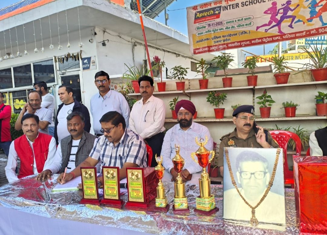 मुख्य अतिथि पुलिस उपाधीक्षक पलिया जितेंद्र सिंह परिहार द्वारा स्व0 नवीन चंद्र गुप्ता मेमोरियल मिनी मैराथन में समस्त विजयी प्रतिभागियों को स्मृति चिन्ह व नगद धनराशि देकर पुरस्कृत व सम्मानित किया