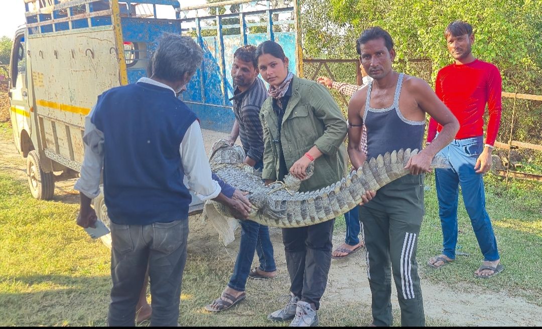 पलिया कलां (खीरी)दुधवा टाइगर रिजर्व प्रभाग पलिया खीरी के अंतर्गत दुधवा बाघ संरक्षण फाउंडेशन के अंतर्गत कार्यरत सुश्री नाजरुन निशा मोटीवेटर को पलिया क्षेत्रांतर्गत मटहिया के पास स्थित तालाब में मगर के उपस्थिति होने की सूचना प्राप्त हुई। ततक्रम में सुश्री नाजरु निशा द्वारा तत्काल मौके पर पहुंचकर उपस्थित लोगों की सहायता से तालाब से मगर का सफलतापूर्वक रेस्क्यू ऑपरेशन किया गया। तदुपरांत रेस्क्यू मगरमच्छ को दुधवा स्थित नकौवा नाले में सुरक्षित अवमुक्त कर दिया गया।