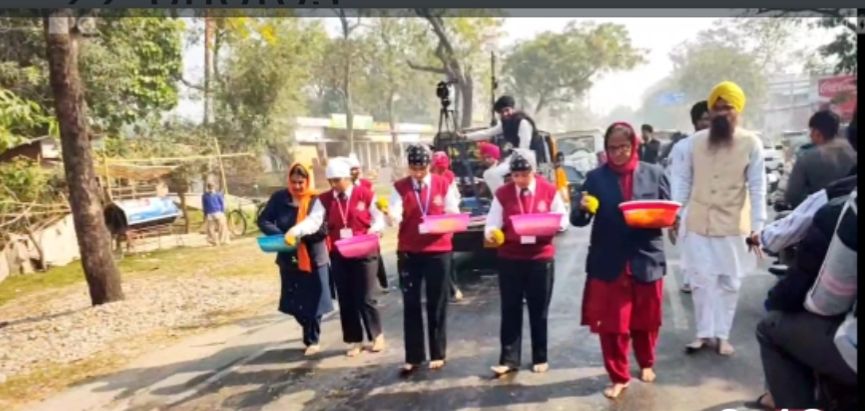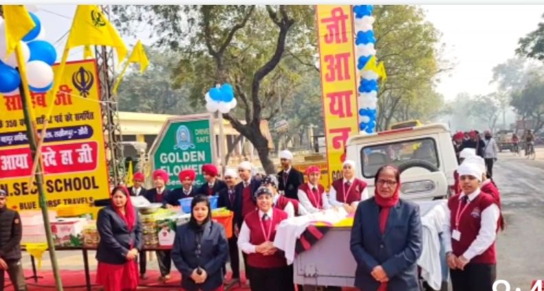 “महान नगर कीर्तन” नू जी आया करने के लिए सब संगत गोल्डन फ्लावर स्कूल पलिया पहुँची।