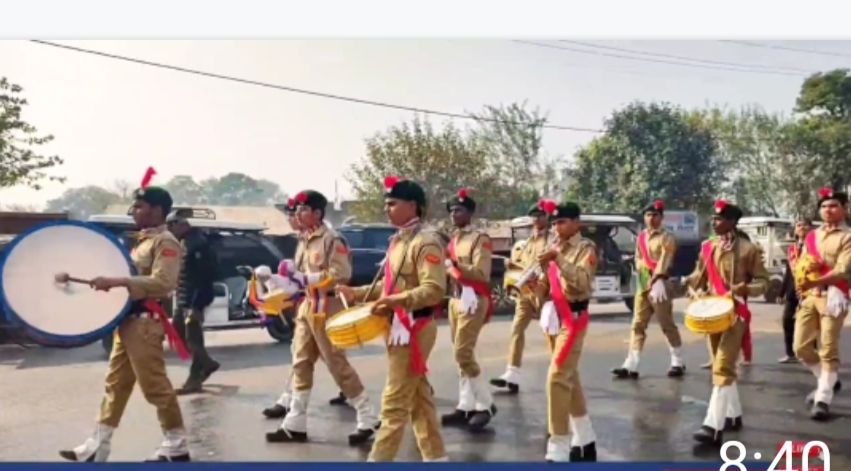 गोल्डन फ्लावर स्कूल का NCC बैंड नगरकीर्तन में सब से आगे चल सब को मोहित कर रहा था ।