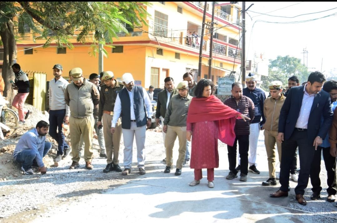 शनिवार को डीएम दुर्गा शक्ति नागपाल स्वयं एसडीएम सदर अश्विनी कुमार सिंह और अफसरों की टीम के साथ मौके पर पहुँचीं और पूरे मार्ग का पैदल निरीक्षण किया। डीएम ने निर्माण गुणवत्ता, लेवलिंग, ढलाई, रोड कटिंग और कार्य की गति की गहन समीक्षा की और स्पष्ट शब्दों में कहा कि गुणवत्ता में किसी भी स्तर पर समझौता स्वीकार नहीं होगा।