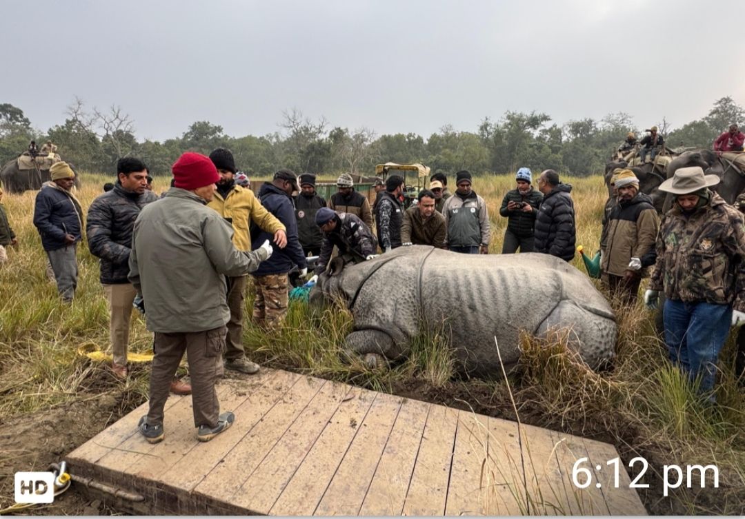 पलिया कलां (खीरी) दुधवा टाइगर रिजर्व प्रभाग, पलिया-खीरी में माह नवंबर 2024 में 02 एवं मार्च 2025 में 02 गैण्डों को प्रथम गैण्डा पुर्नवास केन्द्र से स्वछंद विचरण करने हेतु अवमुक्त किया गया था, जिनकी मानीटरिंग हेतु उन्हें जीपीएस आधारित रेडियो कालर लगाए गए थे। उक्त रेडियो कालरों को विशेषज्ञों की उपस्थिति में आज हटाने की कार्यवाही प्रारंभ की गई। आज भी अत्यंत विपरीत मौसम होने के बावजूद आपरेशन के दूसरे दिन आसाम एवं दिल्ली से आए विशेषज्ञों, डॉ0 एच0 राजामोहन, मुख्य वन संरक्षक एवं फील्ड निदेशक, दुधवा टाइगर रिजर्व, लखीमपुर-खीरी, अधोहस्ताक्षरी की उपस्थिति में वेटनरी टीम, दुधवा बाघ फाउण्डेशन टीम, क्षेत्रीय वन अधिकारी, दक्षिण सोनारीपुर रेंज एवं उनका स्टाफ, उपप्रभागीय वनाधिकारी बेलरायां एवं अन्य स्टाफ के साथ स्वछंद विचरण कर रही दीपिका मादा गैण्डा एवं नकुल नर गैण्डो को ट्रैंकुलाइज कर उसका रेडियो कालर निकाल दिया गया। इस प्रकार 02 दिन में 03 गैण्डों के कालर हटाने की कार्यवाही पूर्ण की गई है।