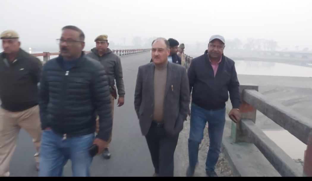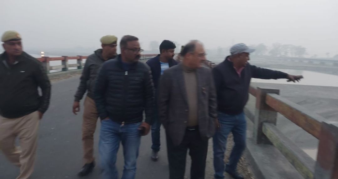 ।।शारदा नदी का स्थलीय निरीक्षण करते हुए सेवानिवृत्त मुख्य जज ए.आर. मसूदी।।
