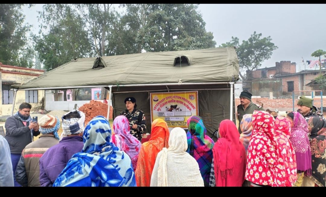 पलिया कलां (खीरी) रवींद्र कुमार राजेश्वरी (कमांडेंट) 39वीं वाहिनी के निर्देशन में वाहिनी द्वारा आज दिनांक 02.01.2026 को सी समवाय बनकटी के कार्यक्षेत्र के गांव भूडा में नागरिक कल्याण कार्यक्रम के तहत पशु चिकित्सा शिविर का आयोजन किया गया पशु चिकित्सा शिविर में भूड़ा गांव के 29 पशुपालकों द्वारा लाए गए करीब 154 पशुओं का इलाज किया गया, वहीं पशुओं को फूट एंड माउथ डिजीज (एफएमडी) एवं पीपीआर (बकरी प्लेग) से बचाव के लिए टीकाकरण भी किया गया। डा. शालिनी परिहार (द्वितीय कमान अधिकारी) द्वारा सीमावर्ती क्षेत्र के पशुओं की जांच की गई। उनके परामर्श के अनुसार पशु चिकित्सा शाखा के स्टाफ ने स्थानीय पशुपालकों को मुफ्त दवाइयों का वितरण किया।इसके साथ ही पशुपालकों को सर्दी के मौसम में पशुओं की देखभाल को लेकर जरूरी सुझाव भी दिए गए। ठंड से बचाव के लिए पशुओं को खुले में न रखने, सूखे व गर्म स्थान पर रखने, पर्याप्त चारा-पानी देने और बीमार पशुओं पर विशेष ध्यान देने की सलाह दी गई।
