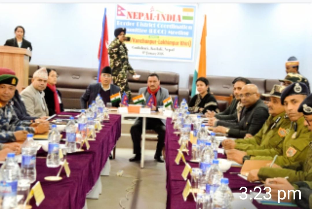पलिया कलां ( खीरी)लखीमपुर खीरी 08 जनवरी। नेपाल में आगामी हाउस ऑफ रिप्रेजेंटेटिव 2026 के चुनाव को सुरक्षित, शांतिपूर्ण और निष्पक्ष संपन्न कराने के उद्देश्य से गुरुवार को भारत-नेपाल समन्वय समिति की बैठक नेपाल में सौहार्दपूर्ण वातावरण में हुई। बैठक में दोनों देशों ने चुनाव के दौरान सूचना आदान-प्रदान और सहयोग को सुनिश्चित करने पर सहमति जताई।