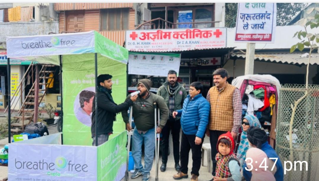 पलिया कलां(खीरी) सिप्ला कम्पनी के सहयोग से अजीम क्लिनिकपर संपूर्णानगर में साँस व फेफड़े की जाँच का लगा निःशुल्क शिविर।