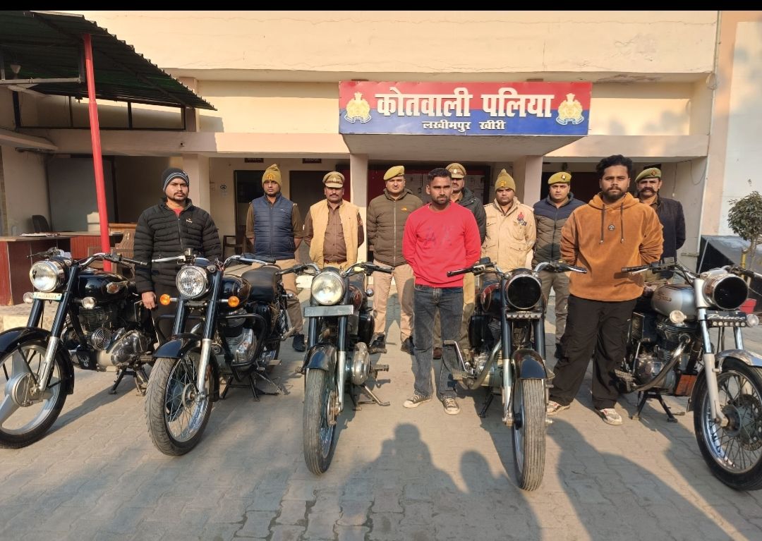 पलिया कलां (खीरी)थाना–पलिया जनपद–खीरी थाना पलिया क्षेत्र में सड़क यातायात नियमों के उल्लंघन पर थानाध्यक्ष पलिया के निर्देशन में पलिया पुलिस टीम द्वारा कार्रवाई करते हुए,बिना नंबर प्लेट व पटाखा युक्त मॉडिफाइड साइलेंसर वाली–05 बुलेट मोटरसाइकिलों को पलिया पुलिस टीम द्वारा एमवी एक्ट की धारा–207 के अंतर्गत सीज किया गया। अभी मोडिफाइड साइलेंसर वाली कुछ मोटरसाइकिल नगर में लोगों को भयभीत करती हुई दौड़ती दिखाई पड़ती है। पुलिस सक्रिय है और अनुमान है कि यह लोग भी जल्दी ही पकड़ में आएंगे।