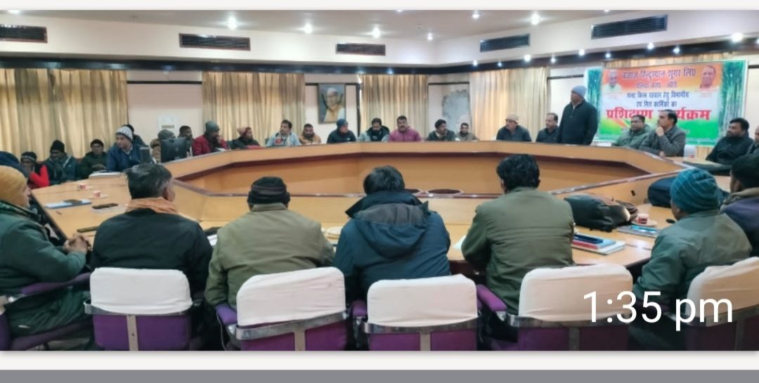 पलिया कलां ( खीरी) उत्तर प्रदेश के गन्ना आयुक्त मिनिस्ट्री एस के निर्देशो के अनुपालन बजाज हिन्दुस्थान शुगर लिमिटेड पलिया कलां के सभागार में गन्ना पर्यवेक्षकों और फील्ड स्टॉफ के लिए दो दिवसीय प्रशिक्षण आयोजित किया गया। इसका मुख्य उद्देश्य गन्ने की विभिन्न प्रजातियों एवं नवीन किस्मों की बैज्ञानिक पहचान सुनिश्चित करना है ,ताकि गन्ना विकास और आपूर्ति प्रणाली को अधिक पारदर्शी बनाया जा सके। प्रशिक्षण के दौरान केन हेड राजीव तोमर द्वारा गन्ने की शारीरिक संरचना जैसे की पत्ती की बनावट, गांठो का स्वरूप,आंख की स्थिति व तने के विकास के आधार पर किस्मों को वैज्ञानिक तरीके से पहचानने के तरीके बताए गए।