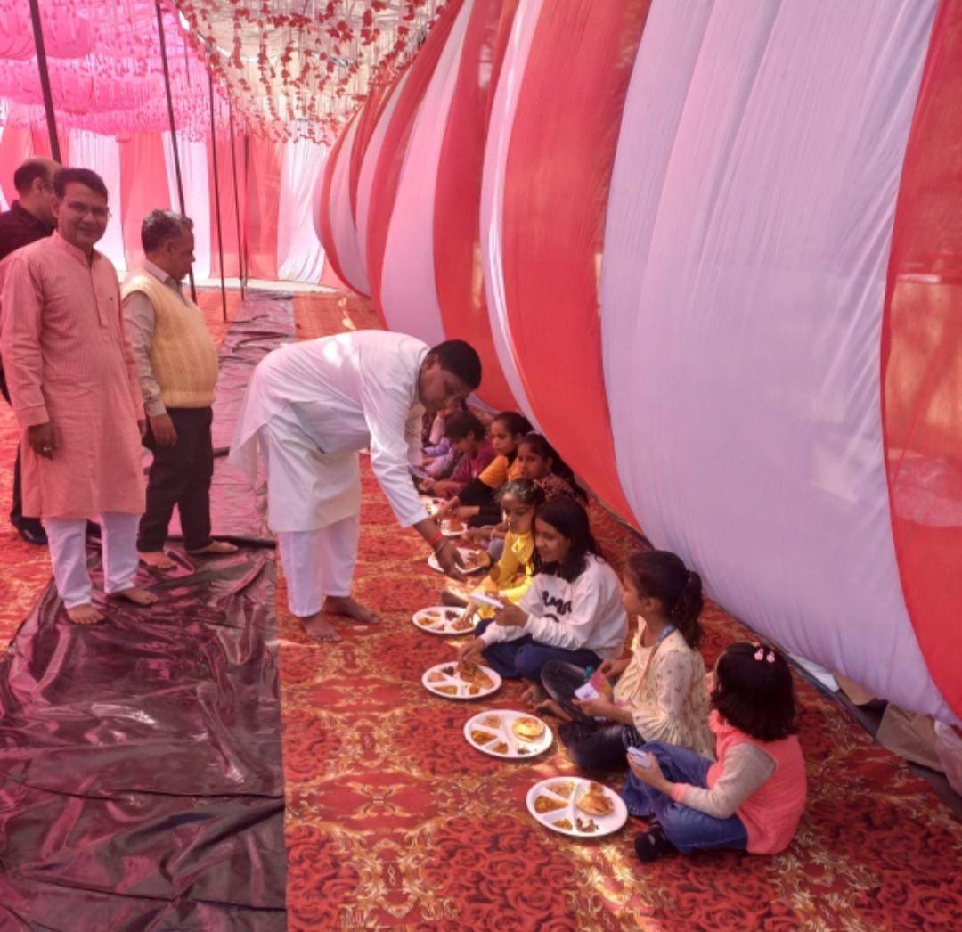 हवन पूजन एवं आरती के उपरांत सभी भक्तजनों को प्रसाद वितरित किया गया । क्षेत्र के प्रमुख मंदिरों के पुजारियों एवं ब्राह्मणों को वस्त्र व दक्षिणा देकर भोजन कराया गया।