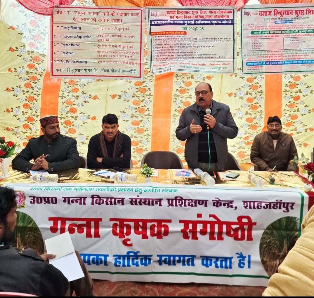 पलिया कलां (खीरी) गोला गोकर्णनाथ – खीरी बजाज हिन्दुस्थान शुगर लिमिटेड चीनी मिल गोला द्वारा बसन्तकालीन गन्ना बुवाई में नई गन्ना प्रजातियों की बुवाई करने तथा उससे अधिक पैदावार प्राप्त करने के लिए चीनी मिल द्वारा ग्राम भल्लिया बुजुर्ग में वृहद गोष्ठी का आयोजन किया गया। इस अवसर पर उ०प्र० गन्ना किसान संस्थान शाहजहांपुर के सहायक निदेशक एवं वरिष्ठ वैज्ञानिक डॉ पी के कपिल एवं चीनी मिल के वरि० महाप्रबन्धक (गन्ना) पी.एस. चतुर्वेदी के साथ अधिकारी व कर्मचारी भी उपस्थित रहे।