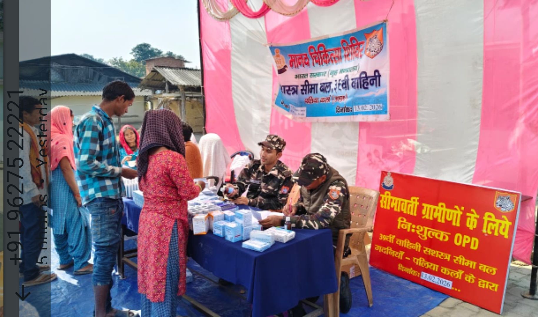 दिनांक 13.02.2026 को 39वीं वाहिनी सशस्त्र सीमा बल, पलिया के कमांडेंट रबीन्द्र कुमार राजेश्वरी के दिशा-निर्देशानुसार वाहिनी की सीमा चौकी सोनहा के कार्यक्षेत्र के अंतर्गत आने वाले वाइब्रेंट गाँव सुरमा में मानव चिकित्सा शिविर का आयोजन किया गया । इस चिकित्सा शिविर में वाहिनी द्वारा आमंत्रित किए गए सामुदायिक स्वास्थ्य केंद्र, चन्दन चौकी के डॉ. अंकित पांडे द्वारा ग्रामीण नागरिकों की स्वास्थ्य जांच की गई एवं उन्हें निःशुल्क दवाइयाँ वितरित की गईं । चिकित्सा शिविर के दौरान 47 पुरुष, 74 महिलाएँ एवं 07 बच्चे कुल 128 ग्रामीण नागरिकों का उपचार किया गया । शिविर में सामान्य स्वास्थ्य जांच के साथ-साथ मौसमी बीमारियों की पहचान कर आवश्यक परामर्श एवं औषधि प्रदान की गई । इस अवसर पर ग्रामीण नागरिकों ने सशस्त्र सीमा बल 39वीं वाहिनी द्वारा आयोजित इस जनकल्याणकारी पहल की सराहना की एवं स्वास्थ्य सेवाएँ उपलब्ध कराने हेतु आभार व्यक्त किया । उक्त कार्यक्रम नागरिकों एवं सुरक्षा बल के मध्य आपसी विश्वास एवं सहयोग को सुदृढ़ करने की दिशा में एक सार्थक प्रयास रहा ।