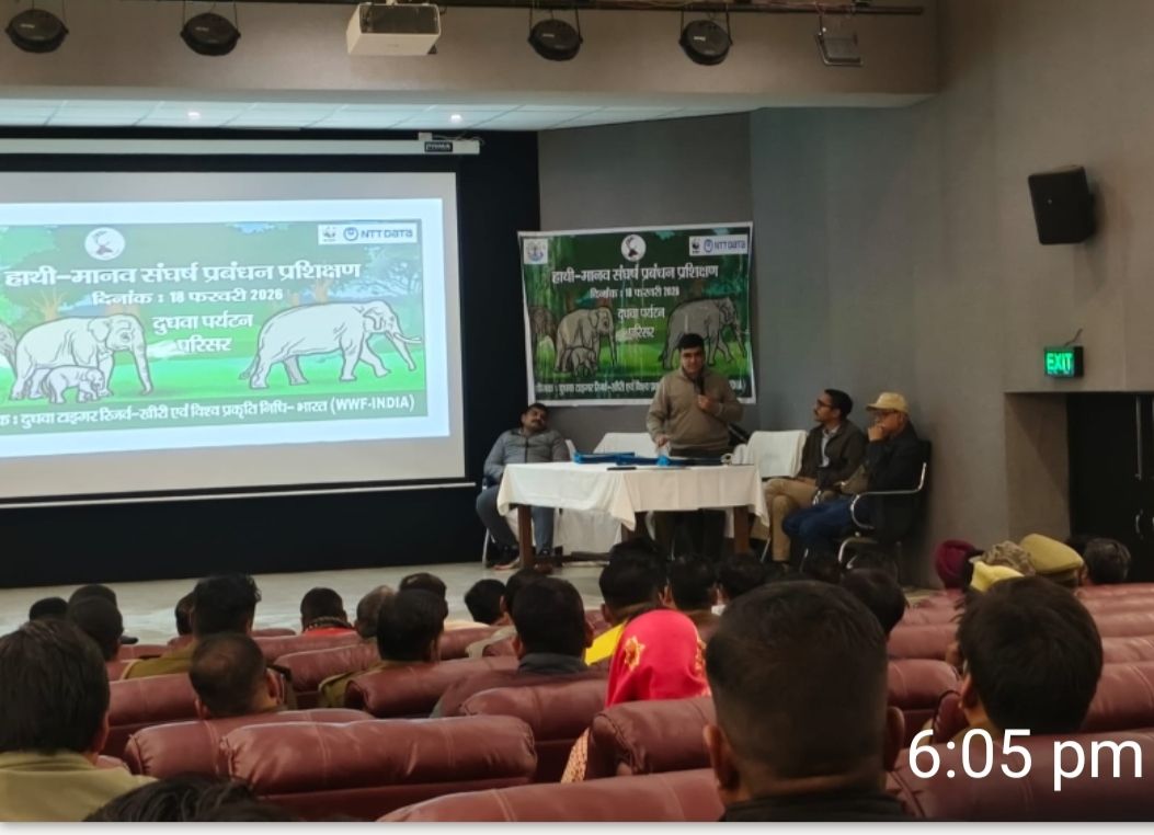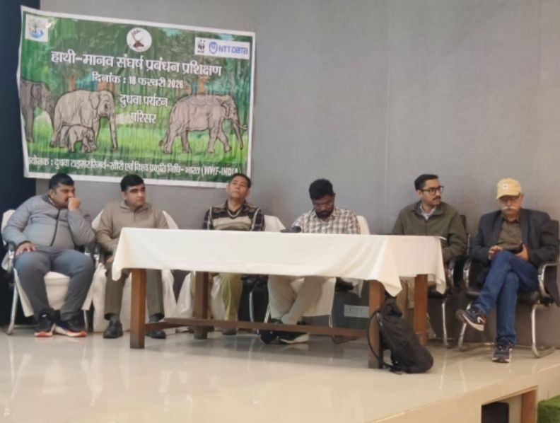 पलिया कलां (खीरी) दिनाँक 18 फरवरी को दुधवा टाईगर रिजर्व के पर्यटन परिसर के ऑडिटोरियम में मानव हाथी संघर्ष प्रबंधन कार्यशाला आयोजित हुआ कार्यशाला फील्ड डायरेक्टर दुधवा टाईगर रिजर्व लखीमपुर खीरी के निर्देशन में दुधवा टाईगर रिजर्व और डब्लू डब्लू एफ इंडिया के संयुक्त तत्वाधान में आयोजित किया गया। कार्यशाला में मुख्य वक्ता और प्रशिक्षक डब्लू डब्लू एफ इंडिया नई दिल्ली से आये एलीफैंट प्रोग्राम के प्रमुख डॉ अरित्र खेत्री और वरिष्ठ परियोजना अधिकारी दबीर हसन रहे। कार्यशाला का उद्घाटन करते हुए उप निदेशक दुधवा टाईगर रिजर्व जगदीश आर ने कार्यशाला के महत्व पर प्रकाश डाला और हाथियों की जंगल में निगरानी, उनके प्राकृतिक वास में सुधार और पूर्वानुमान से ग्रामीण क्षेत्रों में सूचना प्रेषित करने पर बल दिया जिससे ग्रामीण अपने फसलों की सुरक्षा में आवश्यक कार्यवाही कर सके उन्होंने समुदाय आधारित क्रियाकलाप को अपनाने हेतु संबंधित अधिकारियों को अवगत करवाया और तकनीकी आधारित क्रियाकलाप पर सहयोग हेतु डब्लू डब्लू एफ से अनुरोध किया। उन्होंने कहा कि यदि हम किसी हाथी को रेडियो कॉलर करते हैं तो तो उसके मूवमेंट का पैटर्न पता चल जाएगा जिससे हम उनके संरक्षण और ग्रामीणों की सुरक्षा में आवश्यक कार्यवाही कर सकते हैं ।