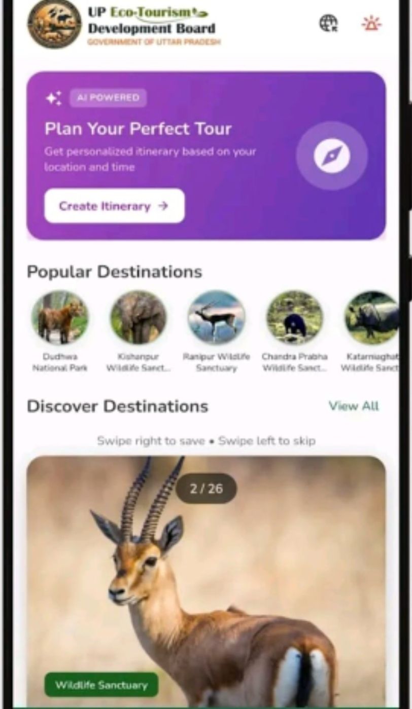 पलिया कलां (खीरी) लखनऊ/लखीमपुर, 05 मार्च 2026 प्रकृति प्रेमियों और रोमांचक पर्यटन के शौकीनों के लिए अच्छी खबर है। प्रदेश के इको टूरिज्म स्थलों की संपूर्ण जानकारी, बुकिंग सुविधाएं और जरूरी मार्गदर्शन अब बस एक क्लिक की दूरी पर उपलब्ध होंगे। उत्तर प्रदेश ईको टूरिज्म डेवलपमेंट बोर्ड (UPETDB) द्वारा तैयार कराया गया ‘यूपी इको टूरिज्म’ (UP Eco Tourism) मोबाइल ऐप प्रदेश के वन्य जीव अभ्यारण्यों, राष्ट्रीय उद्यानों, जंगल ट्रेल्स, झरनों और नदियों जैसे प्राकृतिक आकर्षणों को एक ही डिजिटल प्लेटफॉर्म पर समेटते हुए पर्यटकों को विशेष अनुभव प्रदान करता है।