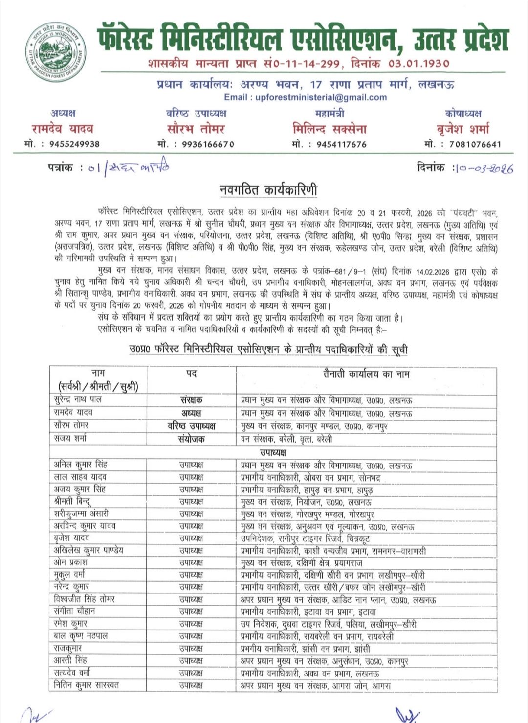 राजकीय कर्तव्यों के प्रति समर्पण, कर्मचारियों के कल्याणार्थ सेवाभाव के चलते संघ में निरंतर सक्रियता के दृष्टिगत इस वर्ष प्रदेश स्तर पर हुए फारेस्ट मिनिस्टीरियल एसोसिएशन, उत्तर प्रदेश के अधिवेशन उपरांत गठित नवीन कार्यकारिणी में इन्हें प्रदेश उपाध्यक्ष के रुप में मनोनीत किया गया है।