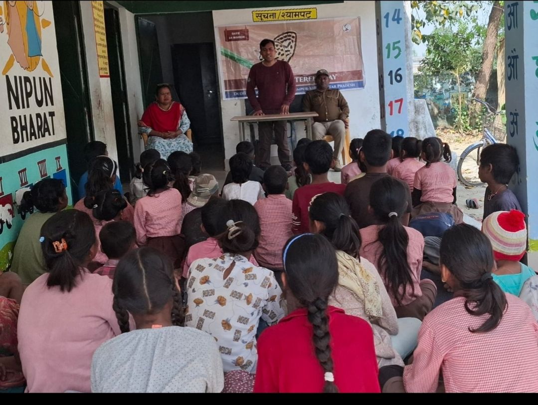 पलिया कलां (खीरी)आज दिनांक 14/3/2026 को ग्राम सोनहा के प्राथमिक विद्यालय मे विश्व तितली दिवस के अवसर पर बच्चों को तितलियो का पर्यावरण मे महत्व एवं संरक्षण के प्रति जागरूक किया गया जिसमे मुनेश्वर सिंह (व0द0) अजय शर्मा (व0जी0र0) उपस्थित रहे। कार्यक्रम में धनीराम मोटीवेटर की महत्वपूर्ण भूमिका रही।