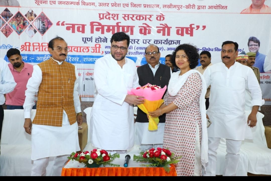 पलिया कलां (खीरी) लखीमपुर खीरी 20 मार्च। प्रदेश सरकार के नवनिर्माण के नौ साल पूरे होने पर आईटीआई ऑडिटोरियम में भव्य कार्यक्रम आयोजित हुआ। मां सरस्वती के चित्र पर माल्यार्पण और दीप प्रज्वलन के साथ प्रभारी मंत्री नितिन अग्रवाल ने जिलाध्यक्ष अरविंद गुप्ता, विधायक योगेश वर्मा, विनोद शंकर अवस्थी, डीएम दुर्गा शक्ति नागपाल, एसपी डॉ ख्याति गर्ग, सीडीओ अभिषेक कुमार के साथ कार्यक्रम का शुभारंभ किया।