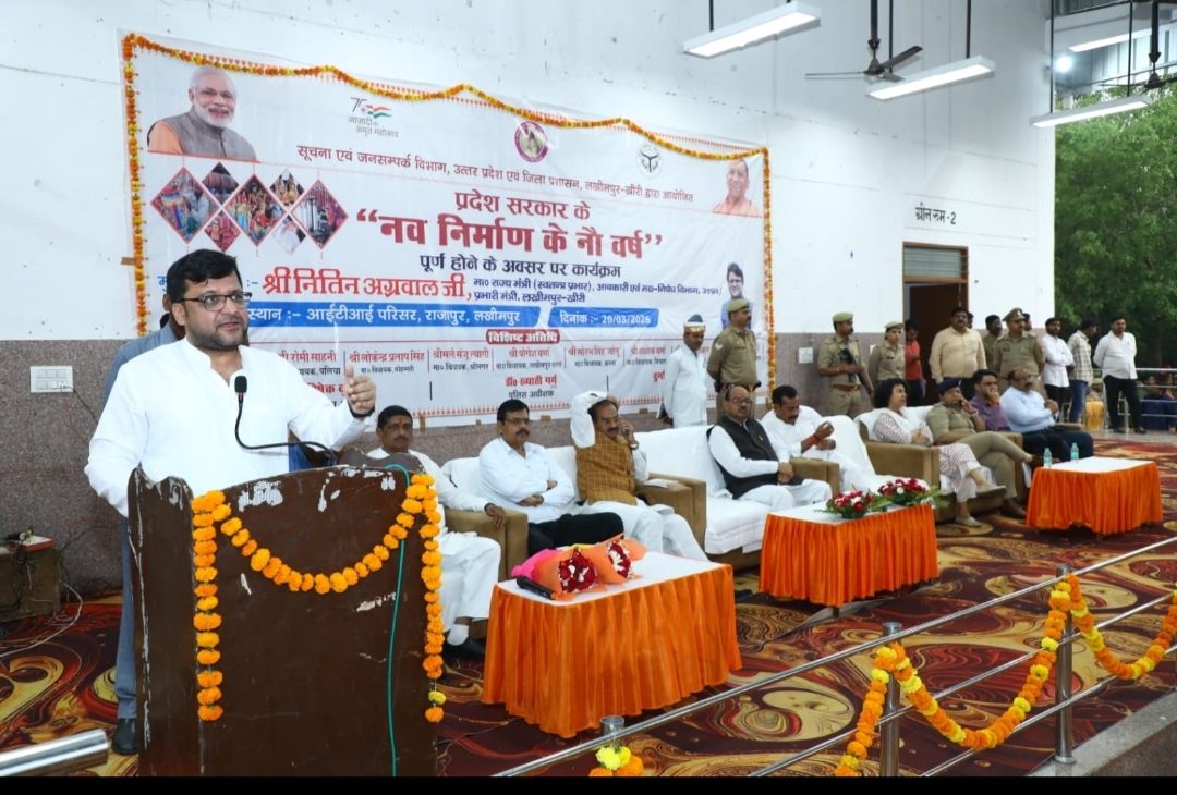 कार्यक्रम को संबोधित करते हुए प्रभारी मंत्री नितिन अग्रवाल ने कहा कि पीएम नरेंद्र मोदी के मार्गदर्शन और सीएम योगी आदित्यनाथ के नेतृत्व में प्रदेश सरकार ने अपने 09 वर्ष के कार्यकाल में गरीब कल्याण, युवा एवं महिला सशक्तिकरण, अन्नदाता और किसानों को आगे बढ़ाने का काम हुआ है। नवनिर्माण के इन नौ वर्षों में प्रदेश की अर्थव्यवस्था मजबूत हुई और रोजगार के अवसर बढ़े। प्रदेश ने ग्रोथ इंजन के रूप में अपनी पहचान बनाई और देश की अर्थव्यवस्था में अहम योगदान दिया। सरकार ने प्रदेश के 25 करोड़ लोगों के लिए जनकल्याण योजनाओं को धरातल पर उतारा। बिना किसी भेदभाव के प्रदेश को 1 ट्रिलियन इकोनॉमी तक पहुंचाने में सरकार ने महत्वपूर्ण भूमिका निभा रही है।
