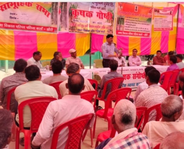 पलिया कलां ( खीरी )बजाज हिंदुस्थान शुगर लिमिटेड चीनी मिल पलिया क्षेत्र के आदिवासी जनजाति थारु क्षेत्र के ग्राम बलेरा में चीनी मिल , गन्ना विकास परिषद पलिया द्वारा एक गन्ना किसान गोष्ठी का आयोजन किया गया जिसमें गन्ना किसान संस्थान शाहजहांपुर के उपनिदेशक डाक्टर पी के कपिल , ज्येष्ठ गन्ना विकास निरीक्षक मिथिलेश पांडे , महाप्रबंधक गन्ना राजीव तोमर मौजूद रहे। किसानों को संबोधित करते हुए राजीव तोमर ने बताया कि अभी बसंत कालीन बुवाई का उत्तम समय चल रहा है ।किसान भाई गन्ना प्रजाति को0 118, को० 98014, को०,15023, को०लख० 14201, की बुवाई करें, उन्होंने किसानों को बताया कि को० 0238 की बुवाई कदापि ना करें साथ ही कोई भी अस्वीकृत या अपरिचित प्रजाति की बुवाई ना करें। जिस खेत में गत वर्ष लाल सड़न रोग लगा हो उसमें दोबारा गन्ना की बुआई ना करें । साथ ही गन्ना बुवाई के लिए बीज के दो आंख वाले टुकड़े काटकर 250 ग्राम या हेक्सास्टॉप दवा को 250 लीटर पानी के घोल में 10 मिनट तक उपचारित करने के उपरांत ही बुवाई करें । खेत में गन्ना बुवाई से पूर्व ट्राइकोडरमा 5 किलो ग्राम प्रति एकड़ की दर से 2 से 3 कुंटल सडी गोबर की खाद में मिलाकर छायादार स्थान में फैला कर संवर्धित कर ले तथा खेत में अंतिम जुताई के समय बिखेर दें। गन्ने की बुवाई ट्रेंच विधि या दोहरी पंक्ति विधि द्वारा ही करें। डॉ० पी०के० कपिल द्वारा किसानों को गन्ना फसल में पोषक तत्वों की जानकारी देते हुए बताया कि मृदा परीक्षण के आधार पर फसल में 180 किलोग्राम नाइट्रोजन, 80 किलोग्राम फास्फोरस, 40 किलोग्राम पोटाश, व 25 किलोग्राम जिंक सल्फेट प्रयोग करें। साथ ही गोबर की खाद 150 कुंटल अवश्य प्रयोग करें । जिससे खेत की उर्वरा शक्ति बनी रहे। डाक्टर कपिल ने किसानों को संबोधित करते हुए कहा कि खेती के साथ साथ बागवानी एवं सब्जियों की खेती करें, आमदनी बढ़ाने के लिए गन्ने के बीच की दूरी कम से कम चार फिट की दूरी होनी चाहिए जिससे सह फसली का लाभ लेकर आमदनी बढ़ा सकें , किसानों द्वारा खेत में जलाये जाने वाले पत्तियों से होने वाले नुकसान के बारे में जानकारी दी । जेष्ठ गन्ना विकास निरीक्षक मिथिलेश पांडेय ने गन्ना विकास परिषद द्वारा संचालित योजनाओ के बारे में जानकारी दी।गोष्ठी के दौरान काफी संख्या में किसान व चीनी मिल के अधिकारी मौजूद रहे। कार्यक्रम का संचालन प्रवीन खोखर ने किया।